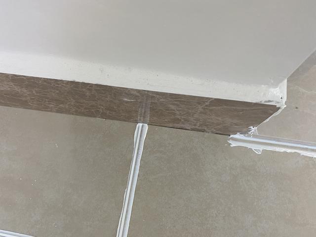 第二是美缝的过程中,在美缝剂还没有完全干燥的时候,就有人踩上去了。鞋底的脏东西,正好粘在了美缝剂的表面。